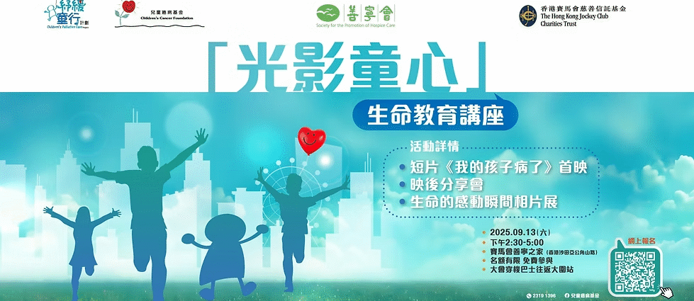 關於生命教育講座 每個人對「生命」都有著獨特的認知與詮釋,而談論生命的過程,常被視為敏感甚至忌諱的話題。 自1999年成立以來,兒童癌病基金一直致力為患有危疾的兒童及其家庭提供優質的家居及紓緩護理服務。紓緩服務的理念是基於珍愛和尊重每一個生命,因此生命教育是紓緩服務的基石,是本會一直重視的範疇。 舉辦這個活動是期望透過服務對象的經歷讓社會大眾再一次思考在人生舞台上,即使面對生命中的各種挑戰,我們如何精彩演譯我們的人生,從而做到不枉此生。 活動內容 短片《我的孩子病了》首映 映後分享會 「生命的感動瞬間」相片展 讓愛與生命的故事延續下去 …