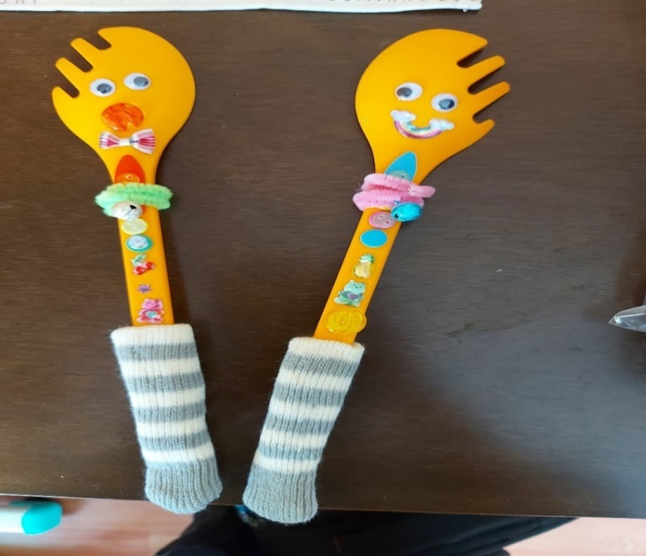 他更興致勃勃做了一對小叉放在床頭上,小叉一般會被人用完即棄掉在垃圾桶內,通通卻珍而重之的把他們留著。有它的陪伴,他才感到舒適和安全。