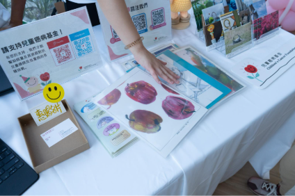 在善寧同樂市集的攤位上,我們展示了一些特別的作品。其中包括一位已離世孩子的畫作。多年前,這位兒童紓緩服務的受惠家長將他孩子充滿童真的作品託付給我們,希望透過這些畫作,讓更多人明白兒童紓緩服務不是冷冰冰的醫療程序,而是陪伴孩子和家庭在有限的時光裡創造無限愛和溫馨的旅程。而這兩日,我們也將這份溫暖,傳遞給各位來訪的善長。