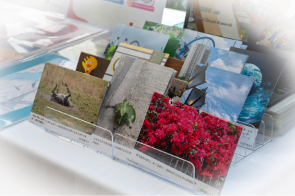 與此同時,我們也特別印製了明信片,歡迎大家挑選自己最喜歡的一張帶回家。這些明信片上的攝影作品,出自一群患有杜興氏肌營養不良症的病童之手。透過今年我們為他們舉辦的攝影工作坊,他們學會用手機記錄眼中的世界,儘管疾病限制了他們的行動,但是並不能限制他們天馬行空的創作力。每張明信片背後,都附有病童的心聲。那是對生命的熱愛,對世界的好奇,以及想要與人分享的渴望。