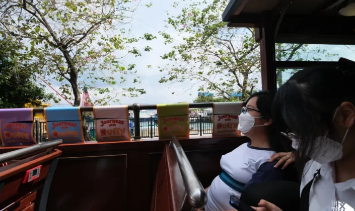 西環屈地街電車廠,一名坐在輪椅的女生,正等候着身旁的家人、工作人員與消防員義工幫忙,把她送到前面那部已安排好的觀光電車上面。